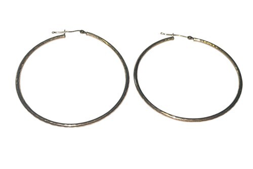 These are a beautiful pair of 10K yellow gold hoop earrings. Classic large 2-inch size with a subtle textured design, perfect for everyday wear or dressing up. The earrings are lightweight at 1.35 grams total weight.