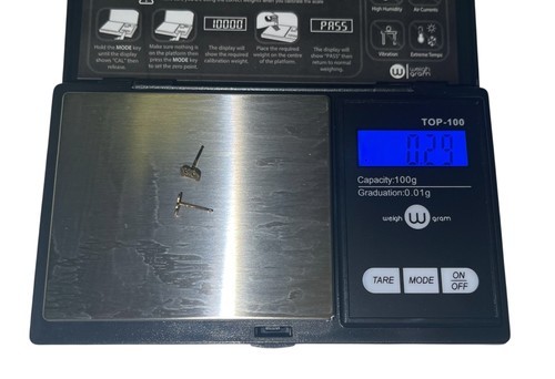 Total Weight: Approx. 0.29 grams (pair, shown on scale)
