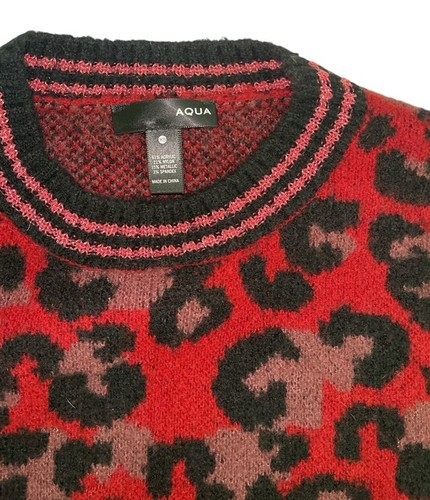 AQUA Red Leopard Print Knit Sweater XS Crewneck Long Sleeve