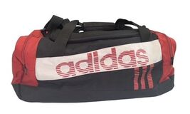 Adidas red and black duffel bag, used a couple of times and in very good, clean condition. No rips, stains, or odors. Features a spacious main compartment, dual carry handles, and an adjustable shoulder strap for easy transport. Classic Adidas branding on the side. Durable construction with zip closures throughout.
