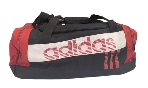 Adidas red and black duffel bag, used a couple of times and in very good, clean condition. No rips, stains, or odors. Features a spacious main compartment, dual carry handles, and an adjustable shoulder strap for easy transport. Classic Adidas branding on the side. Durable construction with zip closures throughout.