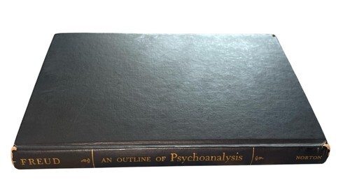 Vintage 1949 hardcover edition of An Outline of Psychoanalysis by Sigmund Freud, authorized English translation by James Strachey. Published by W.W. Norton & Co. Bound in black cloth with gilt spine lettering. Light edge and corner wear; interior clean and unmarked. Originally sold by the National Foundation for Psychological Research, Hollywood. A classic work in Freudian theory.