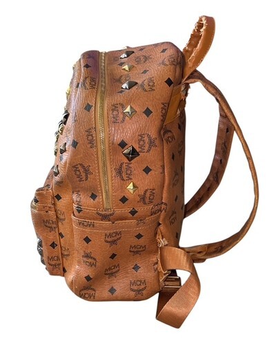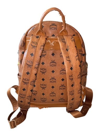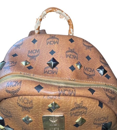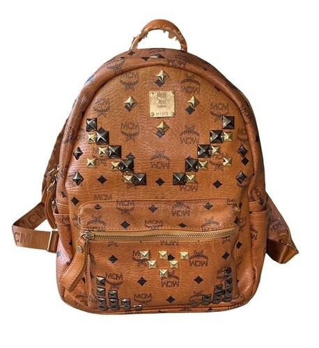 Authentic MCM Stark Studded Backpack Cognac Visetos Medium Brown