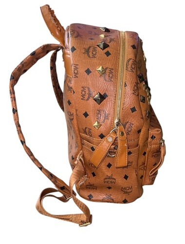 • Authentic MCM Stark Studded Backpack Cognac Visetos Medium Brown image 1