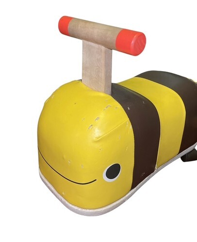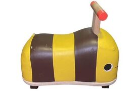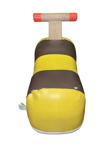 Adorable bumblebee-themed ride-on / push toy by B. Toys. Designed for toddlers to scoot, ride, or push with easy-rolling wheels and a sturdy wooden handle.
