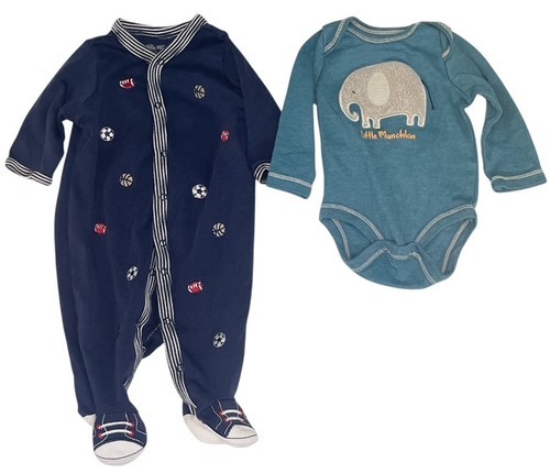 Baby boy clothing lot, size 3 months, includes 5 pieces from Carter’s, Little Me, and Sterling Baby.