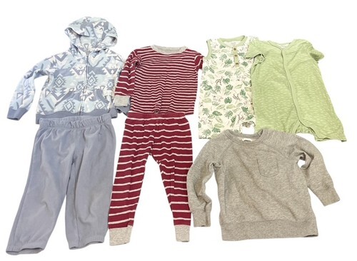 Baby boy clothing lot, sizes 24 months and 2T (similar fit), includes a mix of Carter’s, Old Navy, and Little Me pieces.