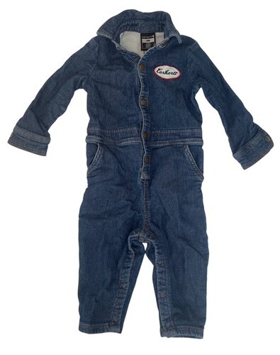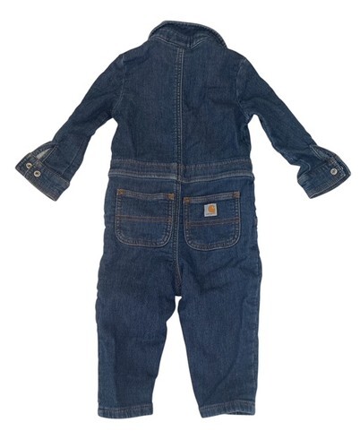 Authentic Carhartt baby denim one-piece coveralls in size 18 months.