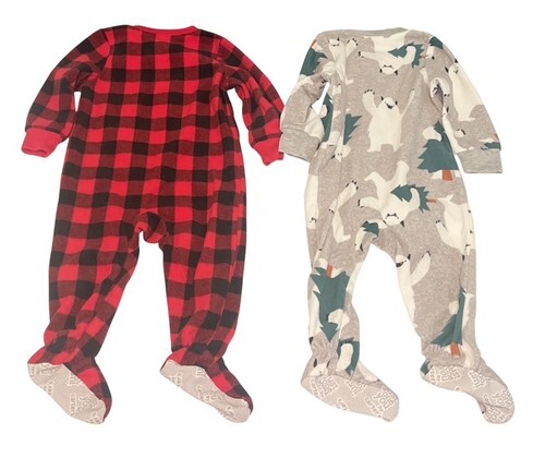 Cute Just One You by Carter’s baby footed sleeper pajama set in size 12 months. Includes two cozy fleece sleepers: one with an adorable woodland bear print and one with a red buffalo plaid moose design. Perfect for keeping baby warm and comfortable.