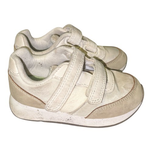 These sneakers are pre-owned and show visible wear, including discoloration, marks, and scuffs on uppers and soles (see photos). Still functional with plenty of life left for play, daycare, or outdoor activities.