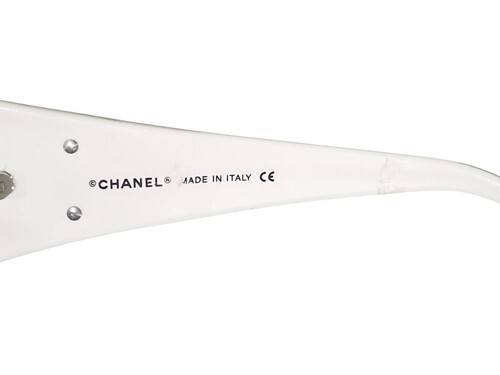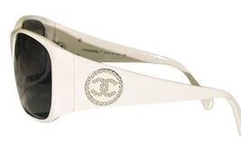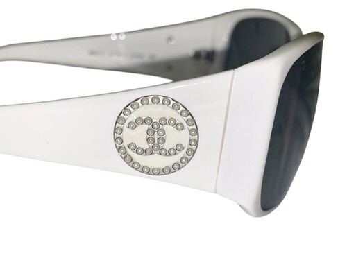 Authentic vintage Chanel sunglasses in a beautiful white frame featuring the iconic CC logo with mother of pearl-style accents.
