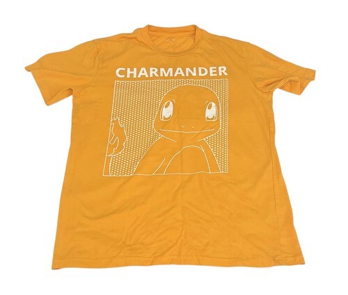 Pokémon Charmander graphic T-shirt in a mustard yellow color featuring a bold minimalist design.