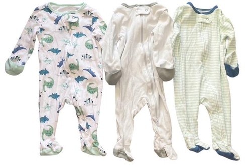Adorable set of 3 Cloud Island baby sleepers in size 0–3 months. All are footed and feature built-in mitten cuffs for extra warmth and comfort—perfect for everyday wear.