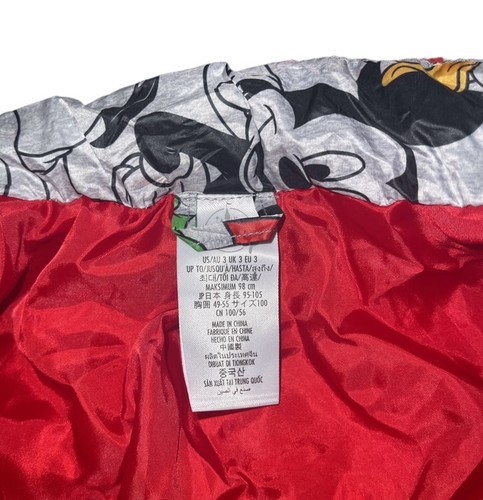 Disney Mickey Mouse Toddler Jacket Size 3 Red Lined Zip Coat