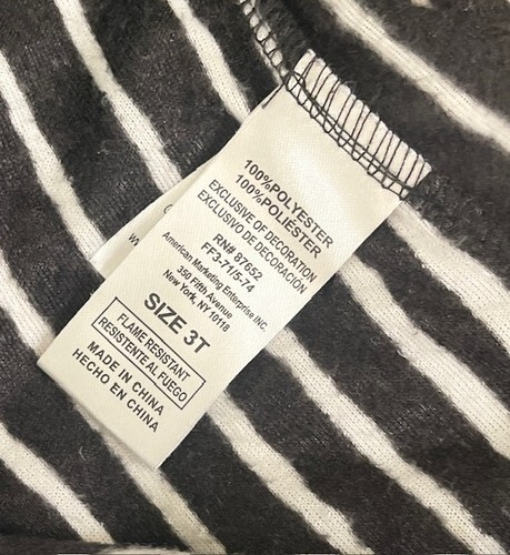 Color/Pattern: Black with white pinstripes (tuxedo-style print)