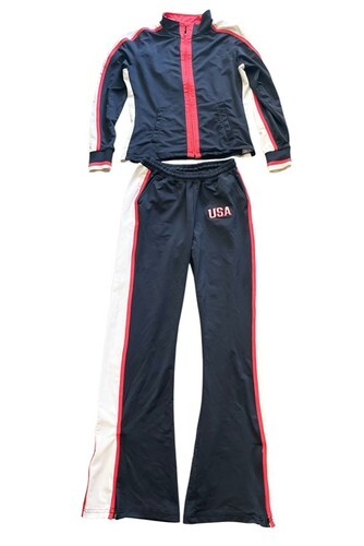 • ES Sports USA Track Suit Womens Small Red White Blue Zip Jacket Pants Set image 1