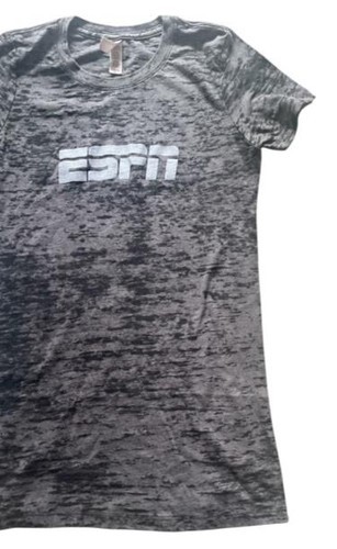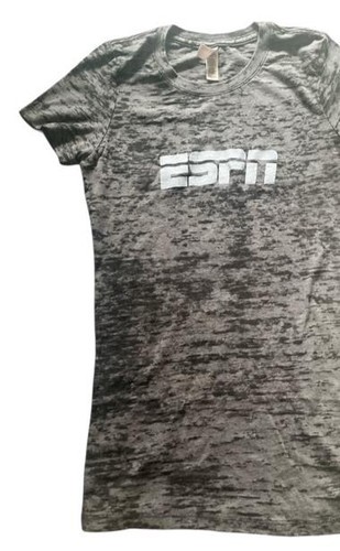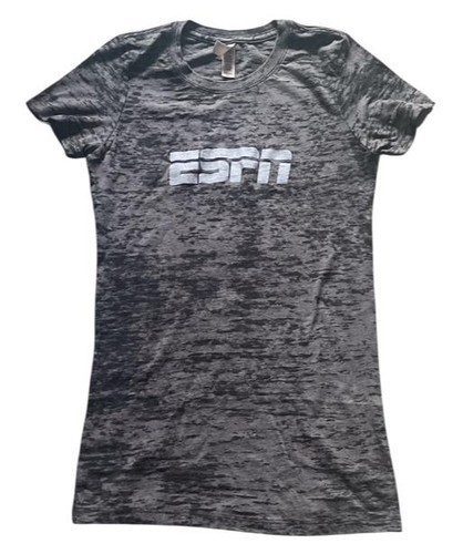 Official ESPN women’s graphic T-shirt in a soft gray burnout fabric with white ESPN logo on the front.