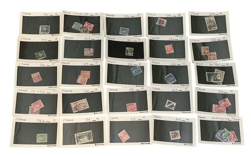 Large collection of France postage stamps presented on organized stock cards.