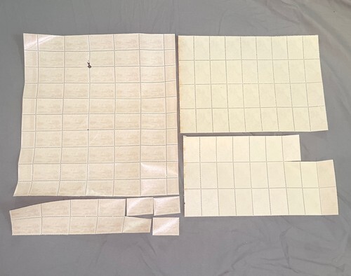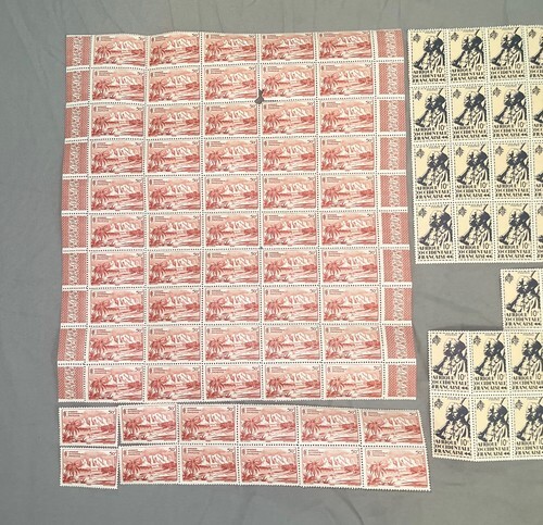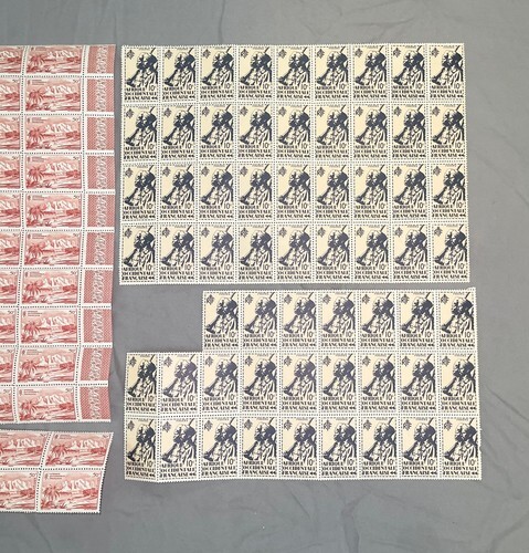These sheets are mint never hinged (MNH) except for the noted damage on the 50c sheet. Original gum is intact on all stamps.