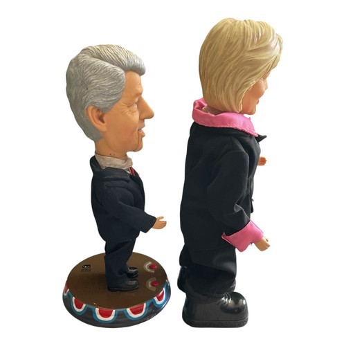 This Gemmy 2005 Bill and Hillary Clinton animated collectible duo features talking, singing, and dancing figures — a fun and nostalgic political novelty item.