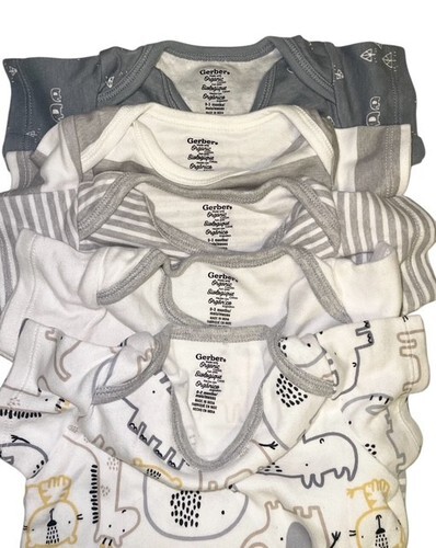 Lot of 5 Gerber baby onesies in size 0–3 months.