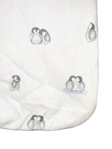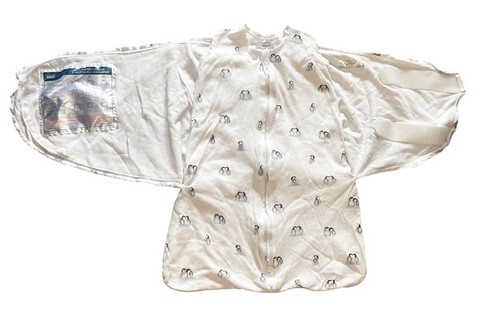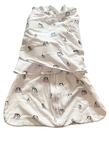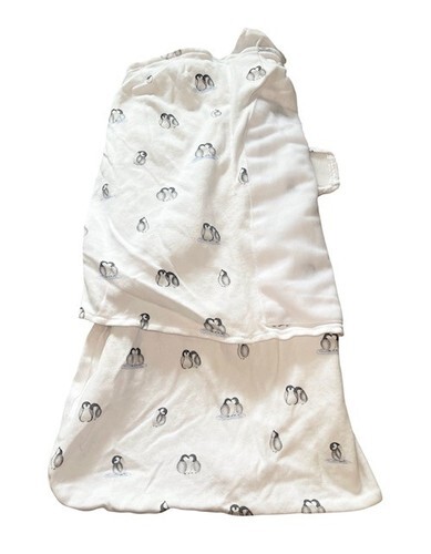 Halo SleepSack swaddle in adorable penguin print. Designed for safe sleep with adjustable wings for swaddling comfort.