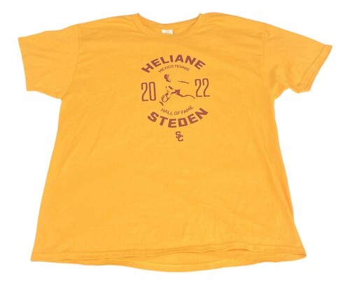 Printed on a Hanes EcoSmart tee featuring a classic athletic fit and soft cotton-blend fabric. Bold front graphic commemorates the 2022 Heliane Steden Hall of Fame tennis event.