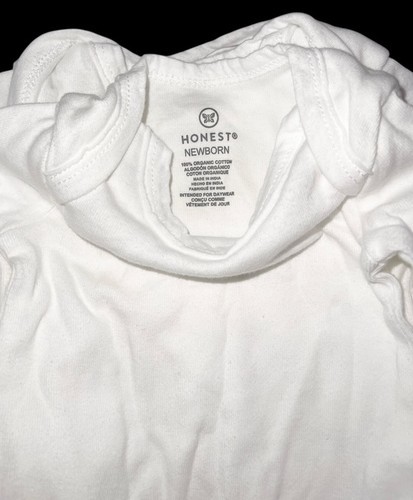 Lot of 9 Honest Company newborn long sleeve bodysuits in classic white.