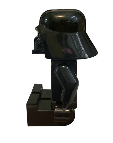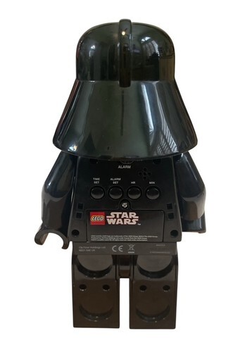 LEGO Star Wars Darth Vader Minifigure Alarm Clock. This fun collectible clock is designed like a large LEGO-style Darth Vader figure with a digital display on the torso.