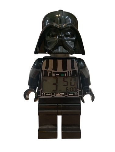 LEGO Star Wars Darth Vader Minifigure Alarm Clock. This fun collectible clock is designed like a large LEGO-style Darth Vader figure with a digital display on the torso.
