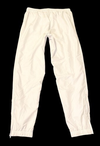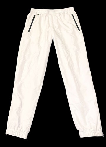 Authentic Lacoste Sport men’s track pants in classic white. Lightweight athletic pants with an elastic waistband and adjustable drawstring for a secure, comfortable fit. Features zippered ankle cuffs for easy on/off and a modern tapered look. Finished with signature Lacoste crocodile logo and zippered pockets.