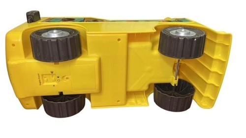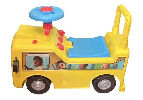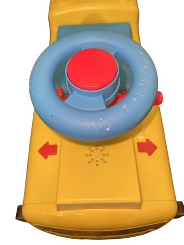 Little Tikes ride-on school bus push toy, perfect for toddlers and young children. Bright yellow bus design with steering wheel, sound buttons, and character graphics. Tested and fully working.