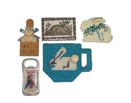 This is a mixed lot of 5 vintage fridge magnets plus a souvenir bottle opener. Includes: