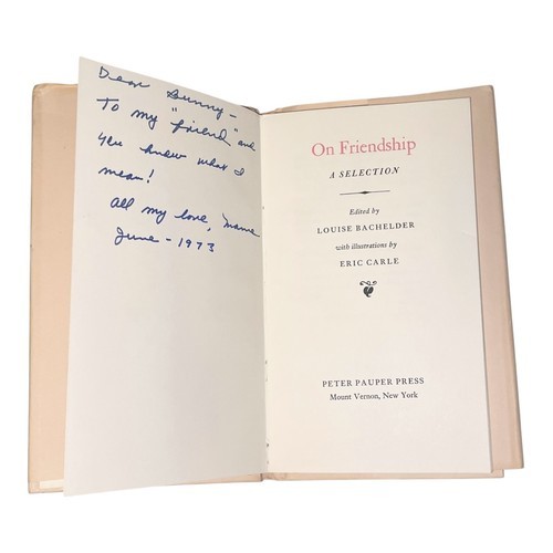 On Friendship: A Selection (1973, Eric Carle illustrations, gift inscription)