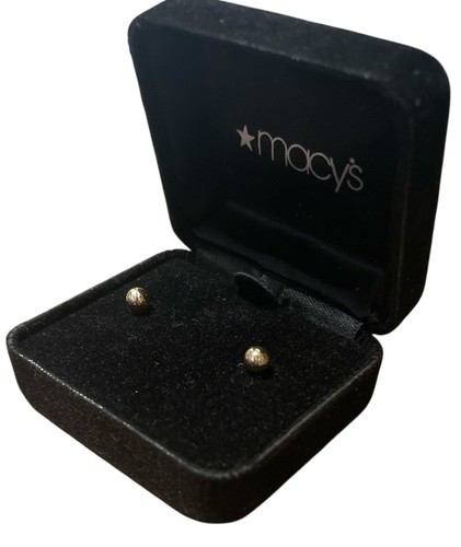 • Macy’s 14K Yellow Gold Ball Stud Earrings Mini Bead Posts New w/ Box image 1