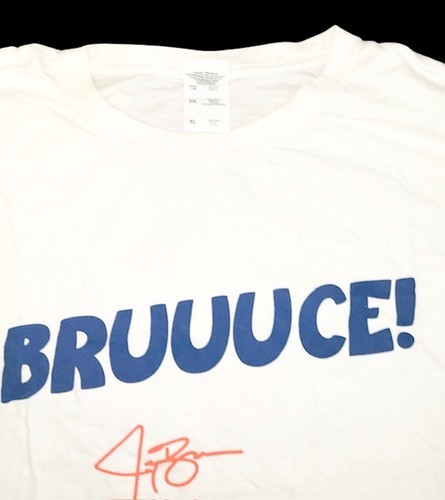 New York Mets “BRUUUCE!” Bruce Springsteen Night T-shirt, a promotional giveaway from Citi Field. The shirt features the Mets logo with the iconic fan chant “BRUUUCE!” referencing Bruce Springsteen.