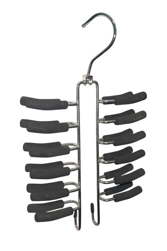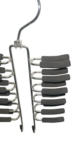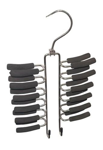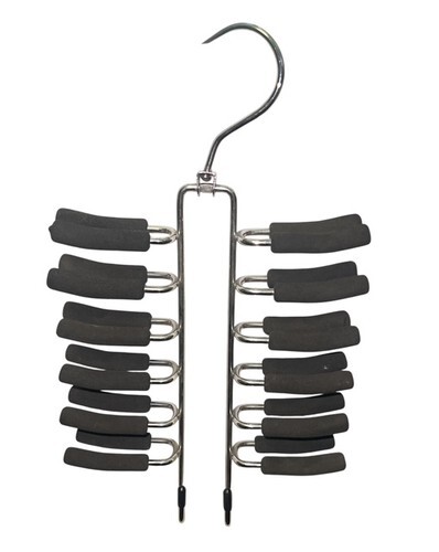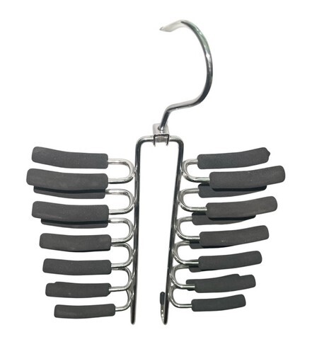 This is a Necktie Rack Hanger Organizer Men Women Closet Metal & Foam 24 Ties 2 Belt Hooks