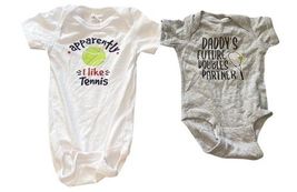 Adorable matching tennis-themed onesies—perfect for sporty families or baby gifts.