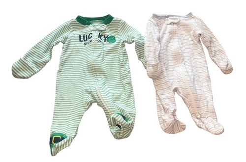 Lot of 4 newborn baby sleepers including Carter’s and Cloud Island. All are brand new, never used, and feature built-in mittens. Soft, comfortable fabrics with cute prints—perfect for newborn essentials.