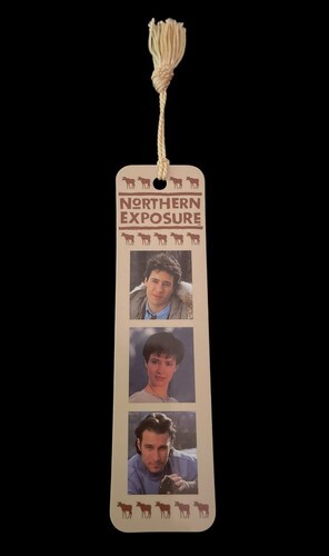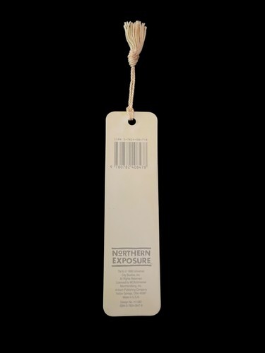 Bring a piece of classic ’90s television nostalgia to your collection with this vintage 1990 Northern Exposure bookmark, featuring three cast photo portraits and decorative moose graphics. This officially licensed bookmark includes its original tassel cord and shows the ISBN/production details on the reverse.