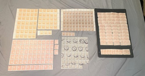 • Multiple full and partial sheets of Oficial Peso 0 orange overprints