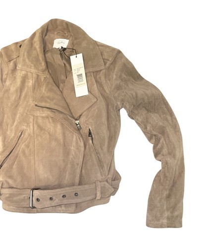 Parker Suede Moto Jacket XS Tan Beige Leather NWT Belted Biker MSRP $625