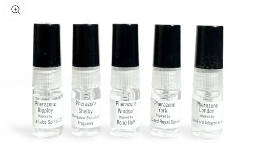 et of 5 Pherazone fragrance sample bottles featuring premium inspired scent profiles. Each fragrance is crafted by fragrance specialists to provide a luxury scent experience at an accessible price.