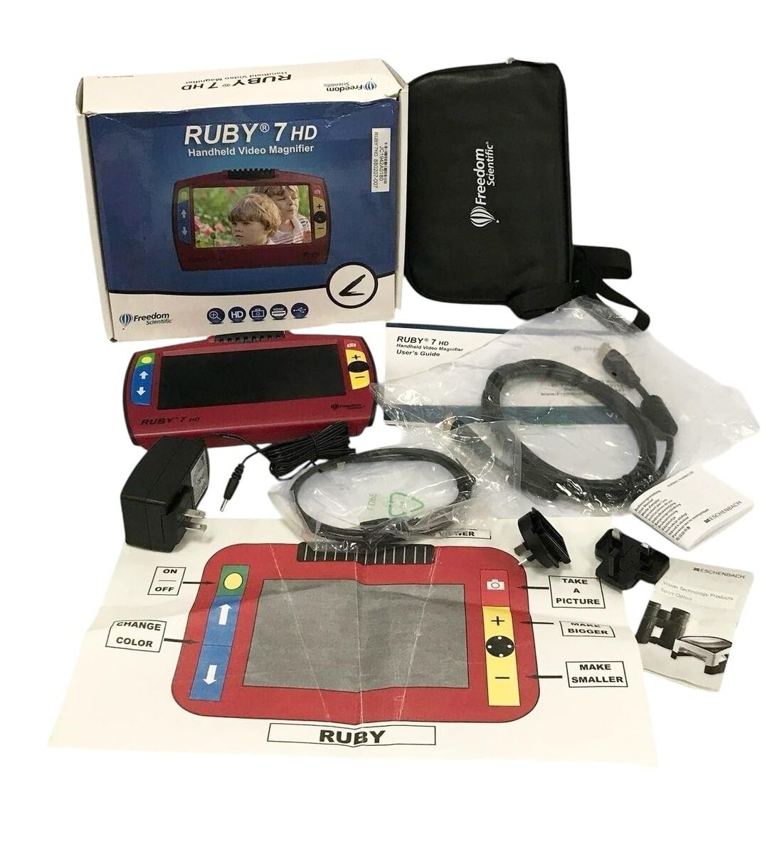 The new RUBY 7 HD has a larger screen, high-definition image, and enhanced functionality to meet the needs of today?s low vision consumers. The unique PivotCam camera offers a wide range of viewing modes for reading, writing, distance viewing, and even a mirror-image self-view. The RUBY 7 HD combines convenience and flexibility as the leader in the next generation of handheld video magnifiers.