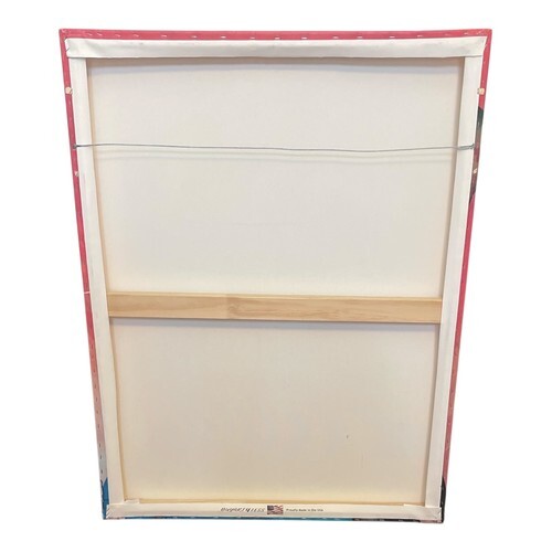 Stretched on wooden frame, ready to hang with wire backing