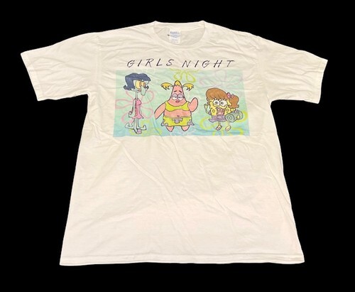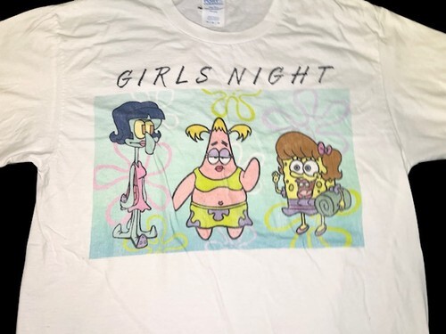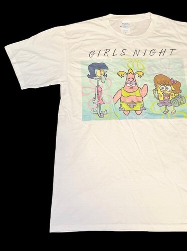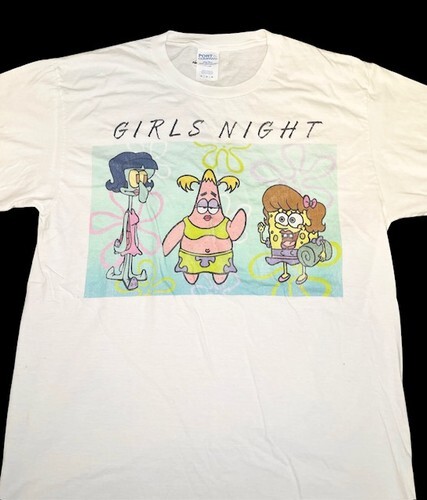 SpongeBob SquarePants “Girls Night” graphic t-shirt featuring fun character design on a white background.