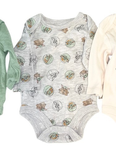 Adorable Star Wars Baby Yoda (Grogu) bodysuit lot, perfect for fans of The Mandalorian.