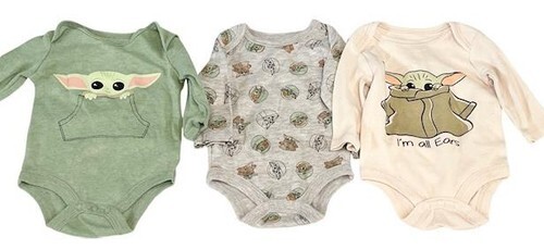 Adorable Star Wars Baby Yoda (Grogu) bodysuit lot, perfect for fans of The Mandalorian.
