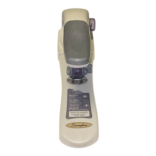 It is in good working condition and has been fully tested. Shows normal cosmetic wear from use (see photos). Uses Swingline Heavy Duty staples for 20–120 sheet capacity.