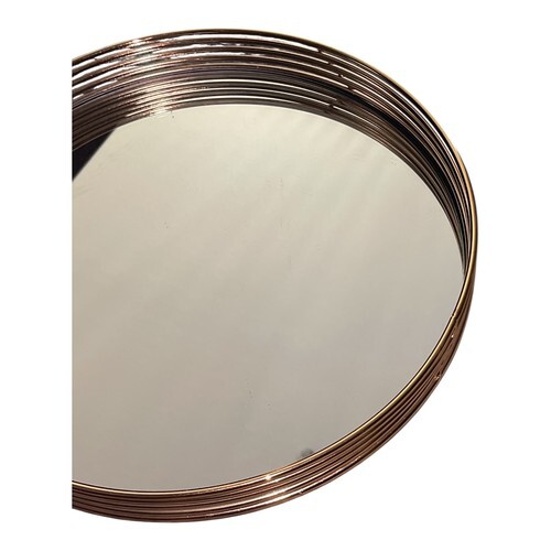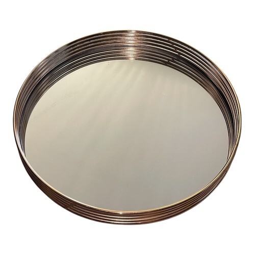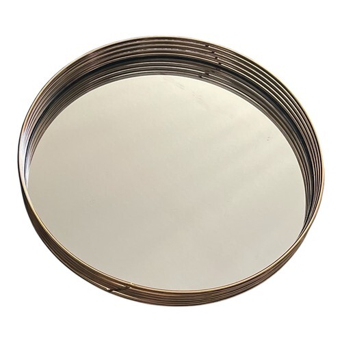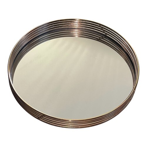 Add a touch of elegance to your home decor with this The Duel round mirrored tray. Measuring 11 inches in diameter, it features a gold-tone wire rim design with a mirrored base, perfect for use as a vanity tray, decorative centerpiece, or serving display.
